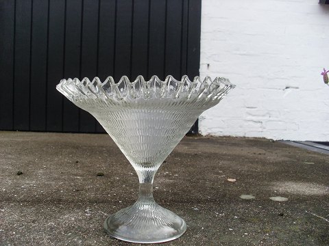 Stor glas opsats, med tragt formet kumme og flæse kant.