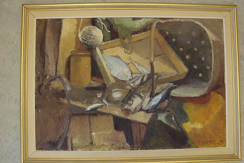 Nature morte med fisk og fiskeredskaber 1952.