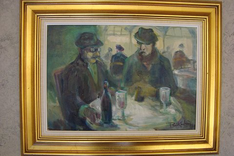 Maleri af Poul Kastrup - 2 mænd på cafe i Paris.
