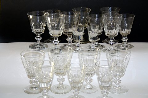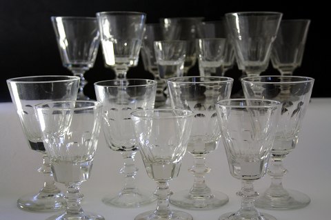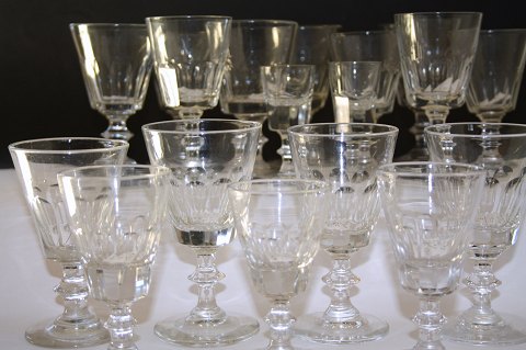 Wellington slebne glas. De fleste er rundslebne i bunden. Der er enkelte der er nyere og enkelte der er tykbundet i kummen. Hel og fin stand.