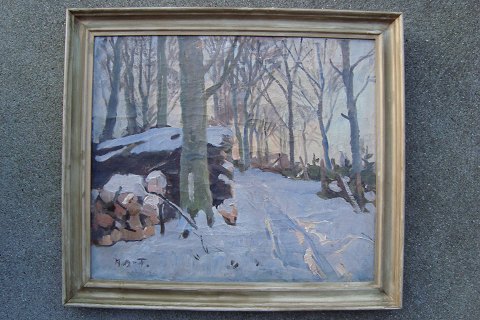 Smukt og dejligt maleri i en lækker patineret guldramme.