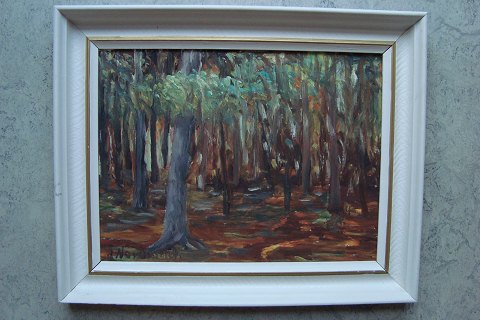 Maleri af ubekendt kunstner - Skovparti, efterår.