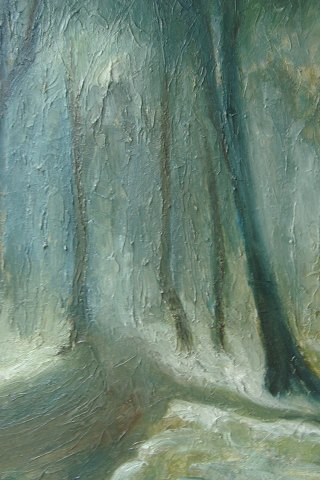 Maleri - Nøgne træer i vinterskov - Hans Billgren.