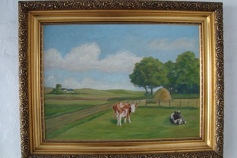 Maleri af Mark Osman Curtis - Køer på mark.