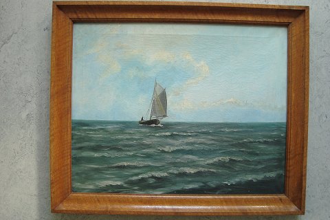 Maleri af Reinhard Johansson - Sejskib på åbent hav.