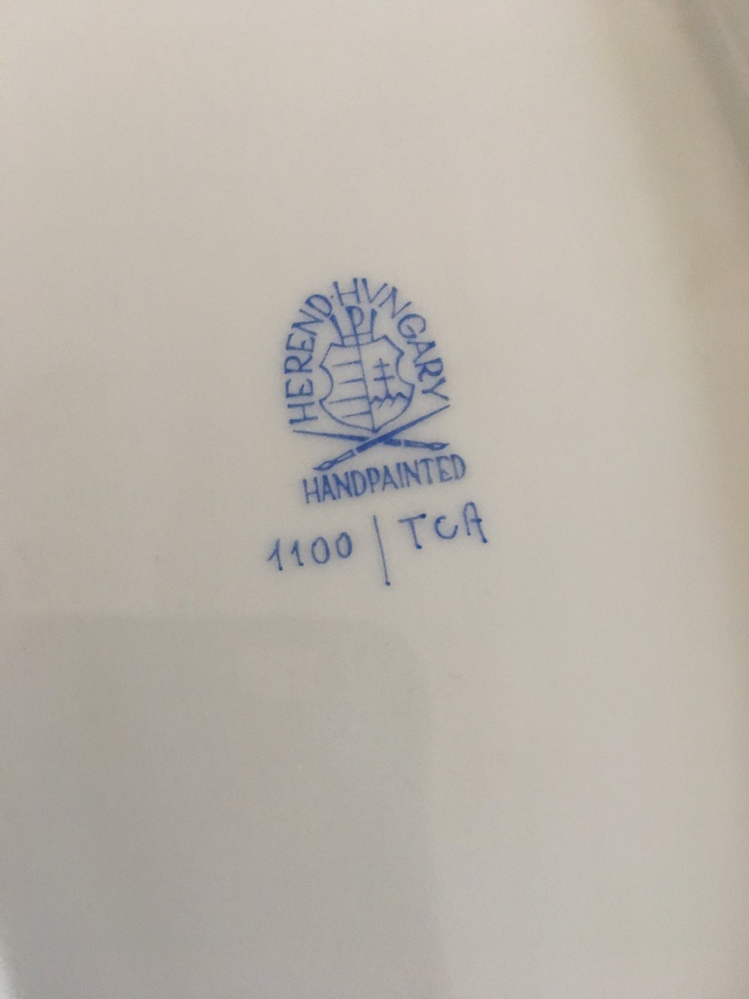 Herend Cornucopia (TCA) Oval Serving Platter, Hungary No 1100. Measures 46 x 37 cm (18 7/64" x 14 9/16") Hungarian vintage Herend porcelain Serving Platter. Hand painted with one of Herend's most magnificent pattern "Tupini, corne d'adordance" (called Cornucopia pattern in the USA) and 24K yellow gold accent. First class Herend trademark is on the bottom. Made in 1980s. Measures: 18 1/8" x 14 1/2" * * * Condition: Brand New, comes from closed out store. Excellent without any damage or repair.
