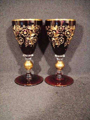 1 Glas rubinrot, mit floralen und Gold. Höhe: 11,5 cm.