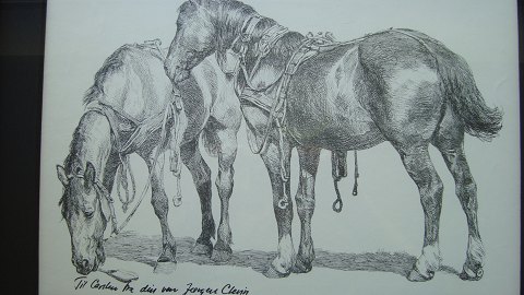 Text available in Danish: Litografisk tryk af 2 heste - dedikeret af Jørgen Clevin.