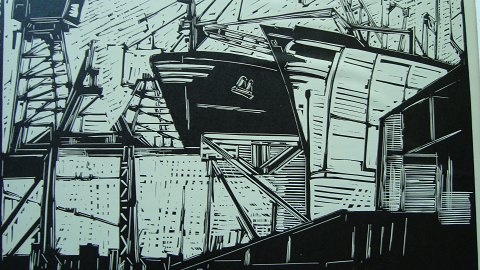 Linoleumssnit på papir.