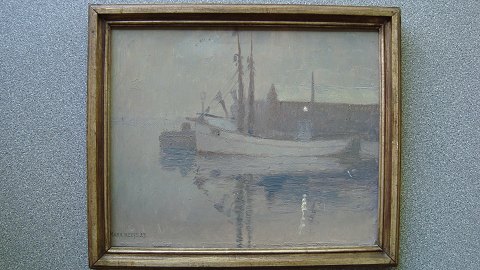 Havneparti, Skagen med fiskekuttere - aften 1927.