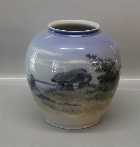 Kgl. fra Royal Copenhagen 2316-35 A Kgl Vase med stendysse 21 x 21 cm I hel og fin stand