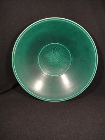 with jadegrønd glasur.med Squirrels in the middle of the bowl glaze.