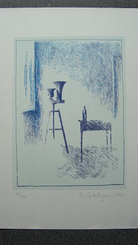 Pia Schutzmann er uddannet fra Kunstakademiet i København (grafisk skole ved Palle Nielsen 1970-77).