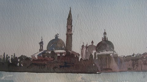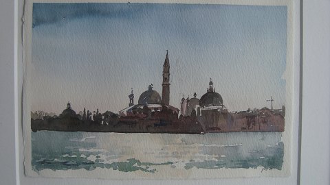 Akvarel af Peter V. Nielsen - Vue ind over Venedig.