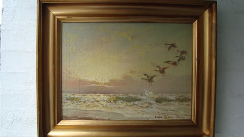 Maleri af Mark Osman Curtis - Fugletræk ved stranden på Skagen.