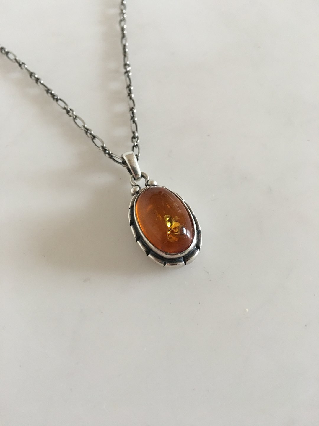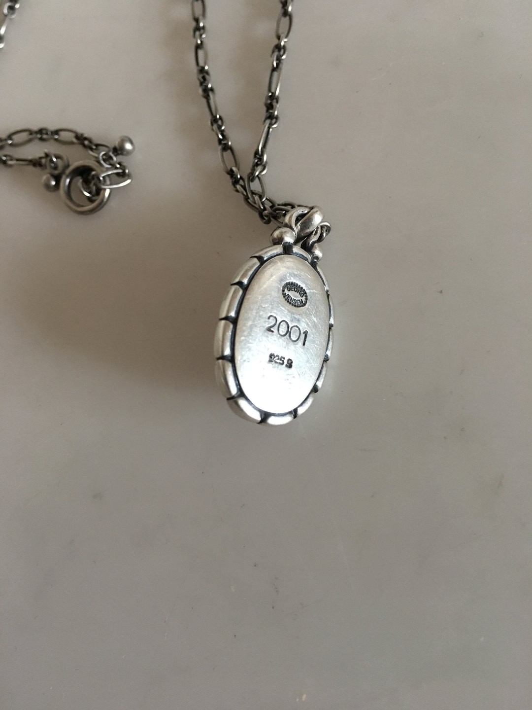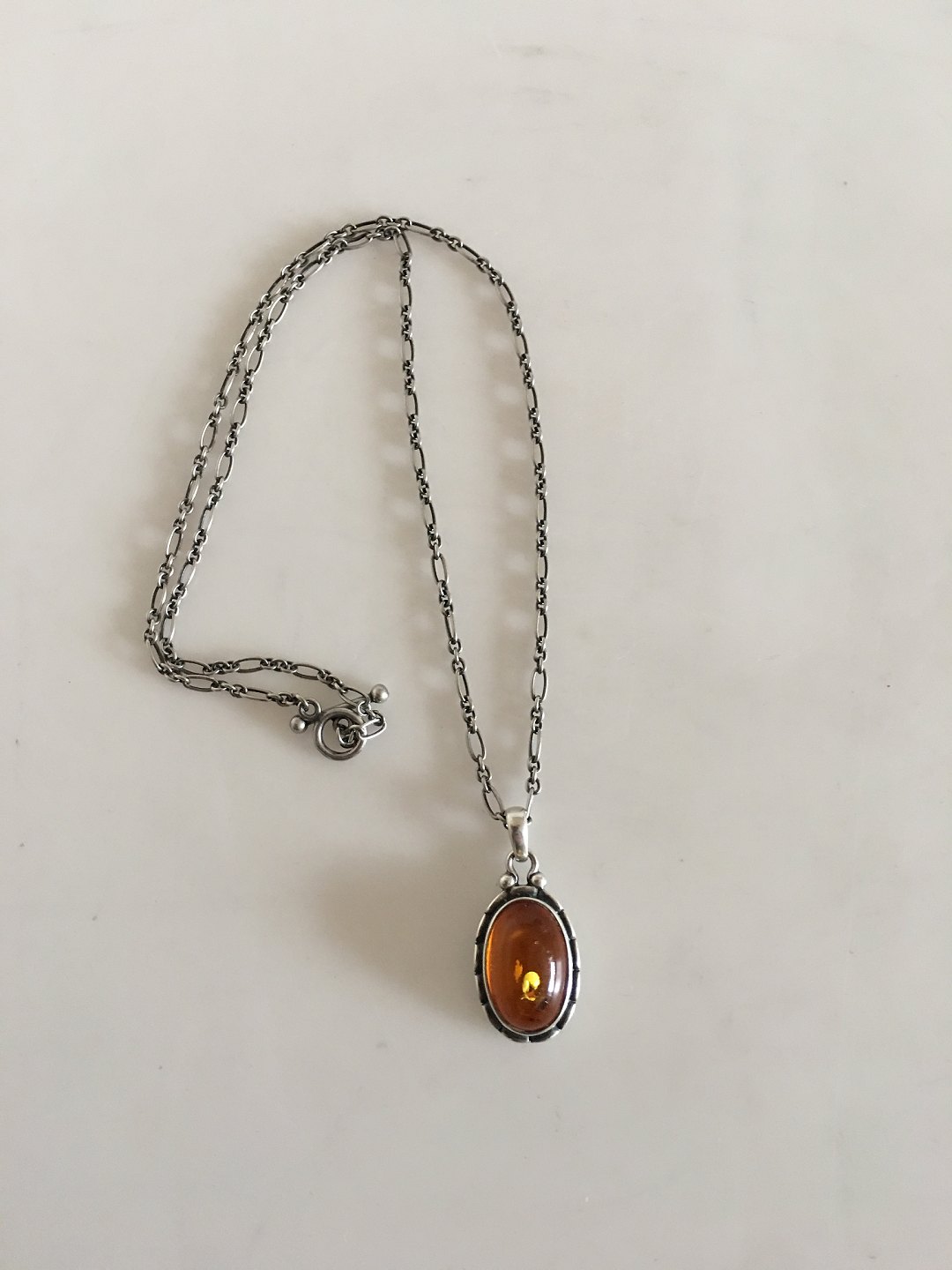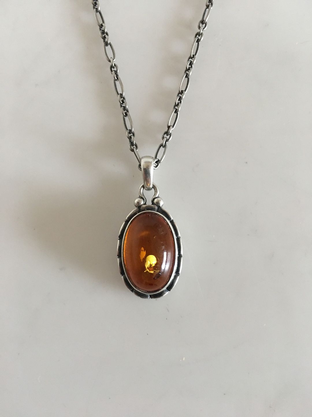 Georg Jensen Årsvedhæng i Sterling Sølv og Rav 2001. Kæden måler 45 cm L. Halskæden og Smykke Vejer 12 gram.