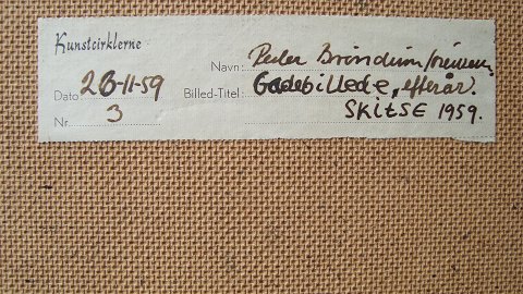 Bagpå mærkat fra Kunstcirklerne 26/11 1959 No. 3, samt Peder Brøndum Sørensen.