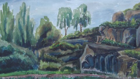 Akvarel af Adzer Blume 1957 - Parti fra Hammerknuden.