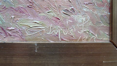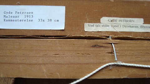 Bagpå gammel mærkat fra udstilling eller auktion med titlen "Ved det stille vand i Dyrehaven - Efteraar 1913.