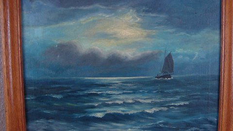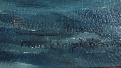 maleri af Reinhard Johansson - Måneskin på Øresund.