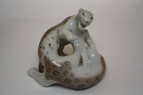 Russisk figur, legende sneleoparder. Længde 16 cm. Højde 15,5 cm. Pris: 675 kr.