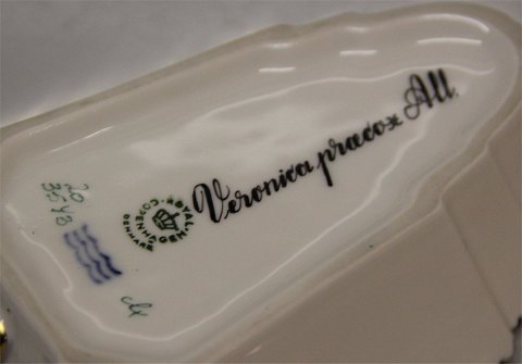 Royal Copenhagen Flora Danica Blomstermotiver på guldbelagt perlestel. 20-3543 Veronica præcox All. Aflang asiet nyt nr: 343 18 cm 1. sortering i fin og hel stand