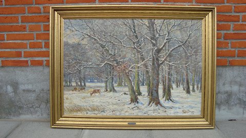 Vinterparti fra Dyrehaven med spisende rådyr - 1939.