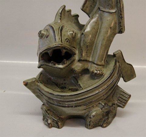 Royal Copenhagen stentøj Unika Helge Christoffersen "Jonas og Hvalen" 37 cm Signeret CH I fin og hel stand