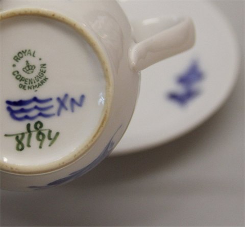 Royal Copenhagen Blå Blomst Flettet 8194-10 Kop med høj hank 9 x 8,2 cm (090) og underkop 14.5 cm (073) I hel og fin stand 090/093