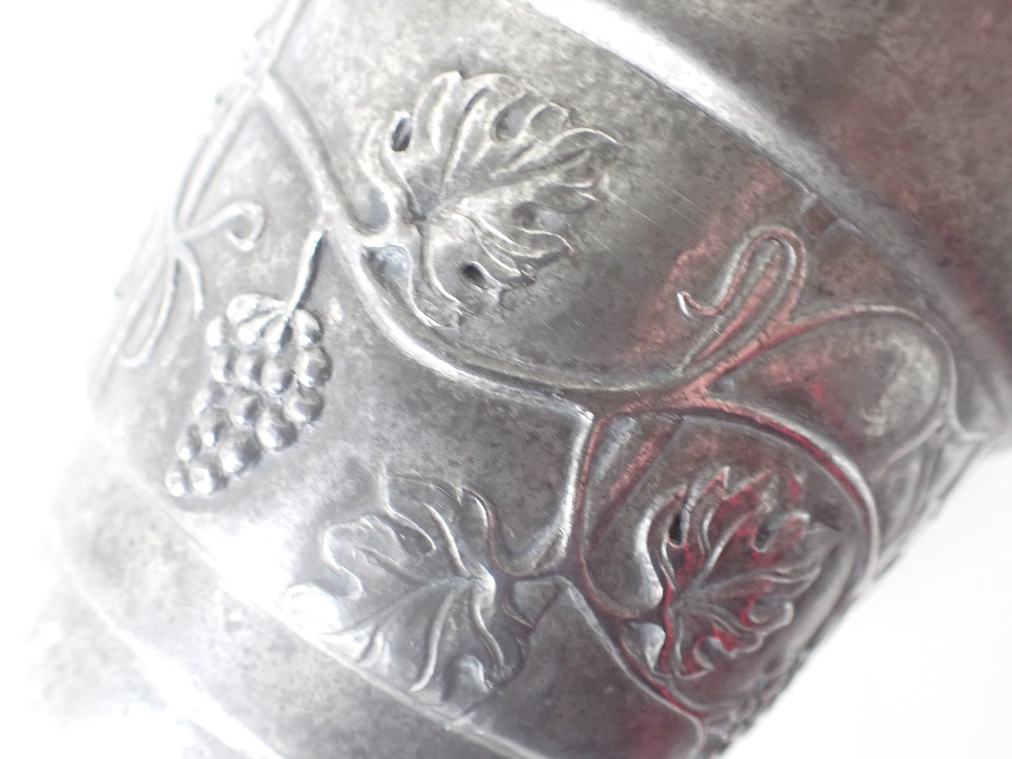 Urtepotteskjuler i tin - sjælden, men noget medtaget indvendig og lidt mørk udvendig; men med smukt bånd i form af en vinranke dekoration dekoration. Ikke i Vejen bogen. Stemplet HPH, Danmark i oval og 2119=1919. Højde: 12,5 cm. diameter foroven: 12,5 cm. .