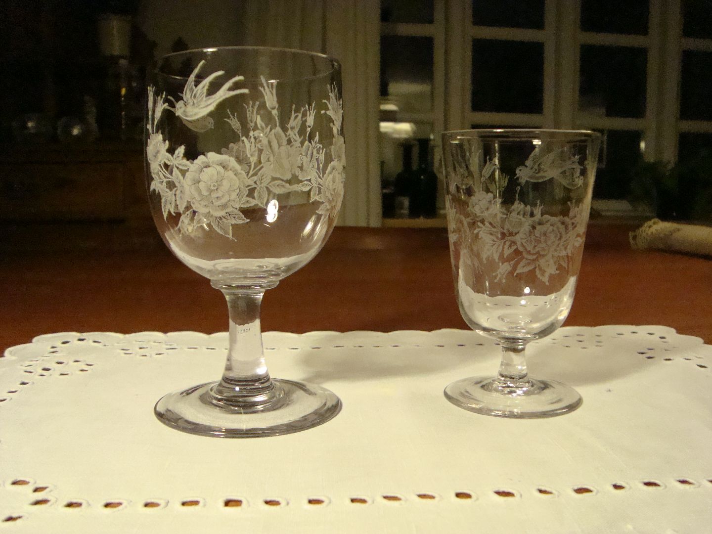 Porterglas med ætset svalemotiv højde 14 cm. kr. 750