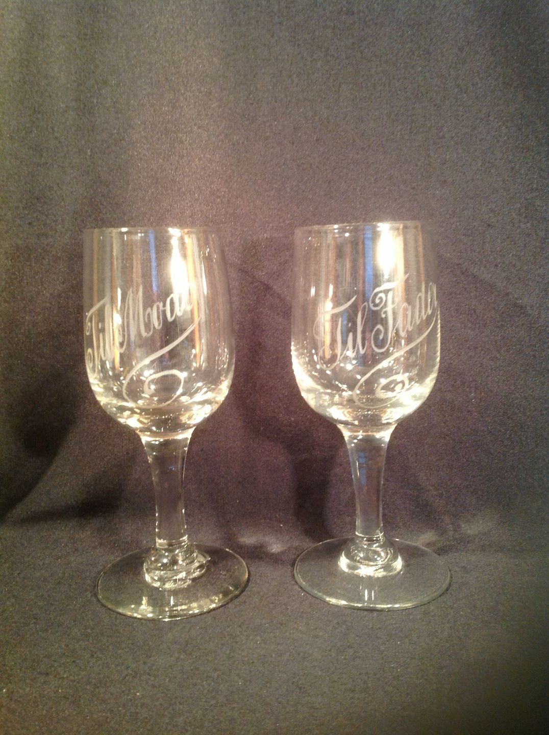 Afsprængt Schüssel auf glatten Stiel. auf dem Becken mit gravering.Til Vater, für Mutter.