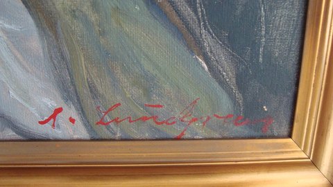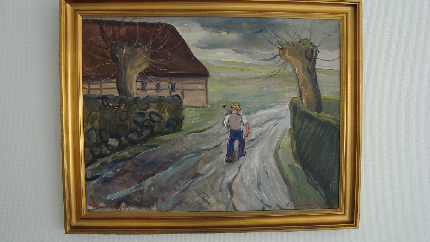 Maleri - Aksel Lundgreen - Parti med gående mand fra Hasseris 1935.