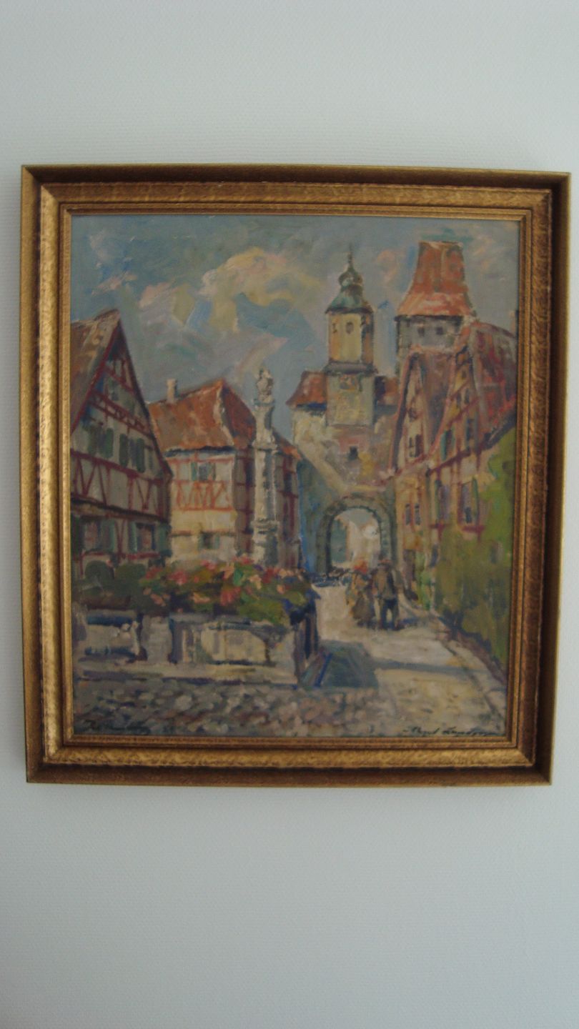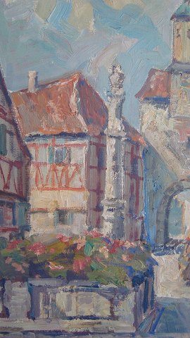 Maleri - Aksel Lundgreen - Parti fra Rothenburg 1959.