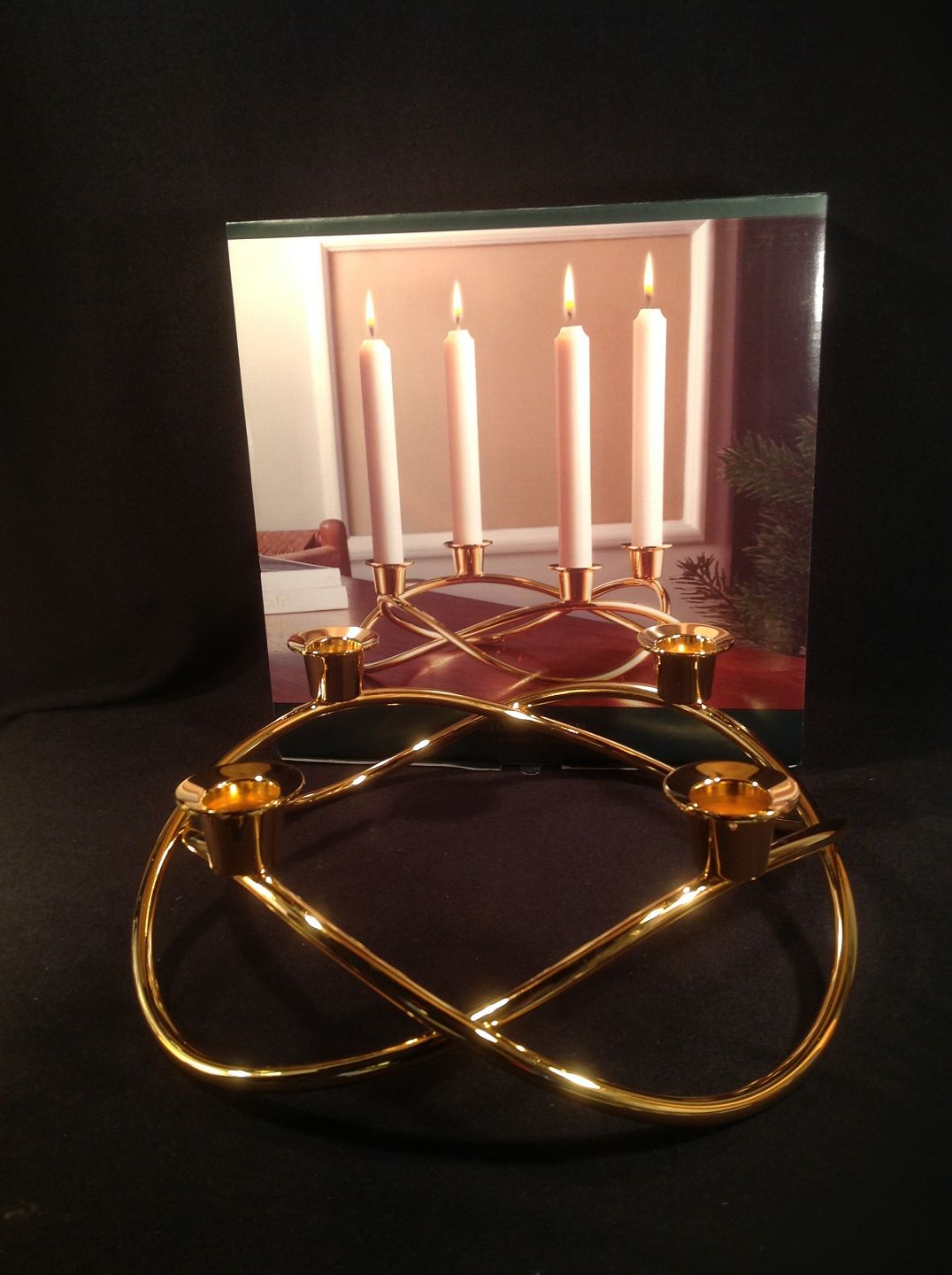Adventsstagen er udført i stål forgyldt med 24 karat guld.