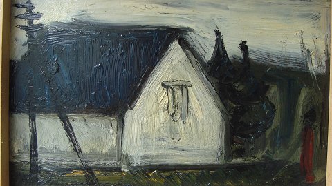 Bagpå - "Figur ved hus - skitse 64" samt signatur - P.B.S.