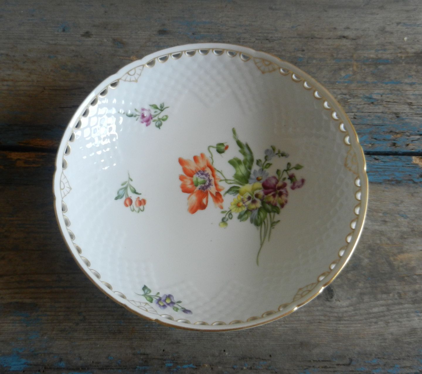 B&G Hand-painted Saxon Flower bowl with lace edge.