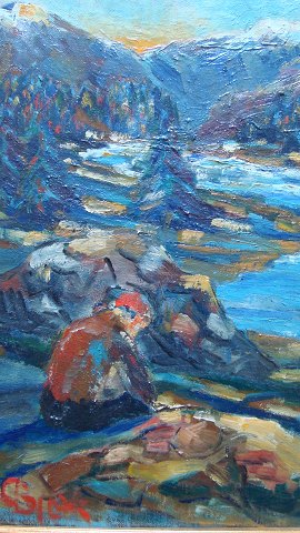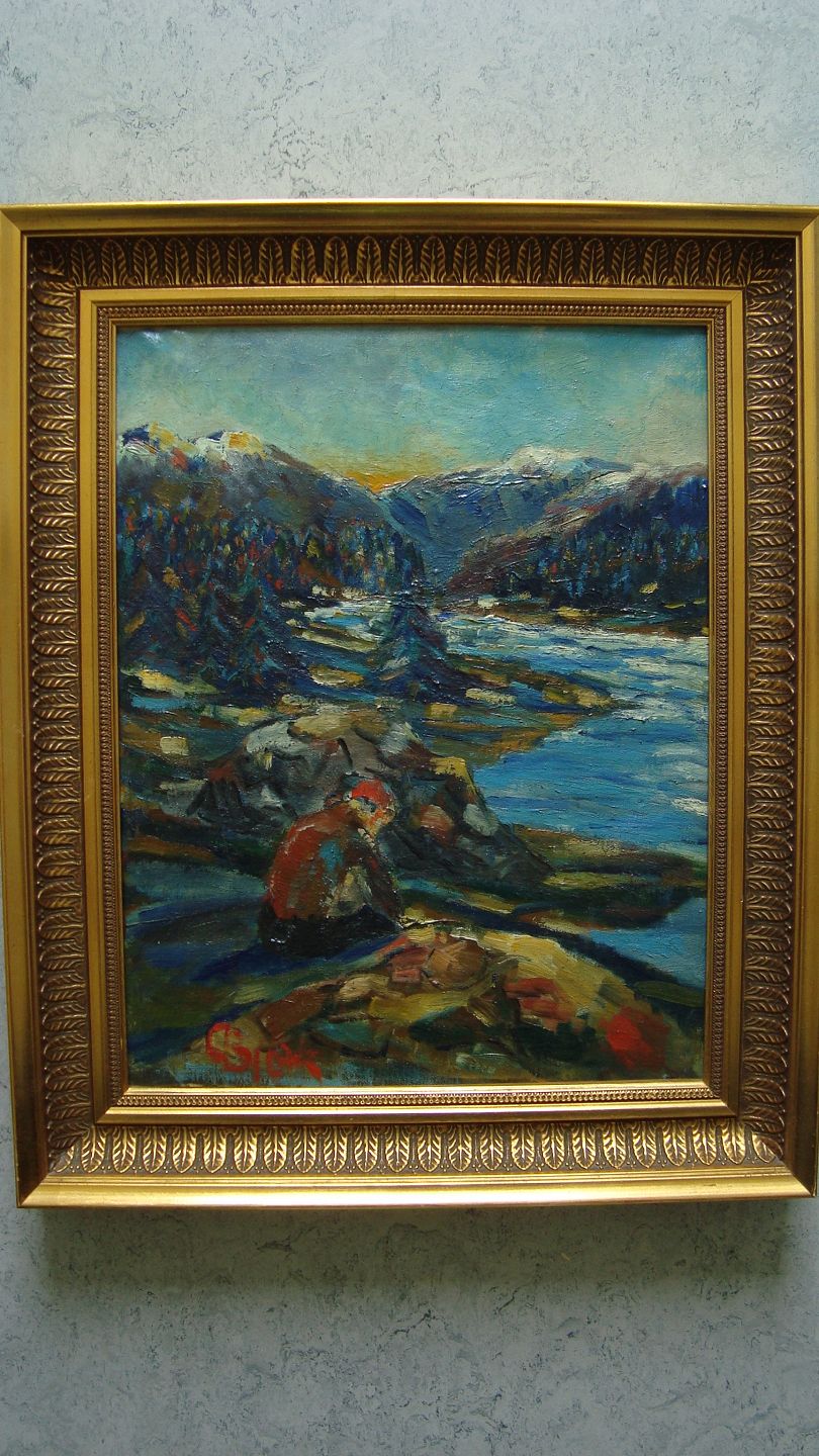 Smukt og dejligt maleri i gode farver fra omkring 1920.