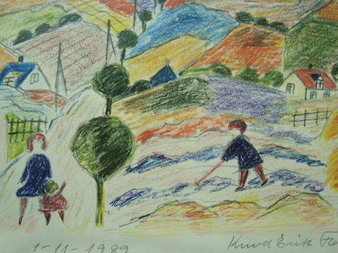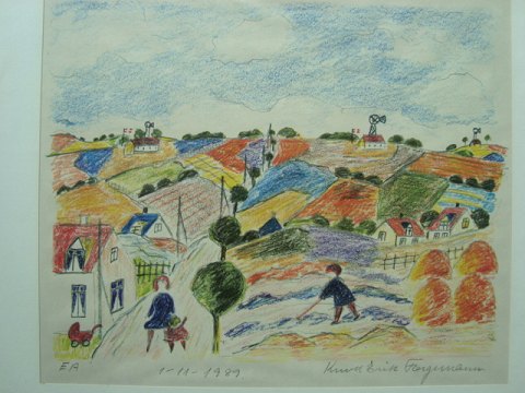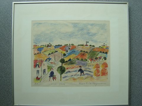 Text available in Danish: Tryk af Knud Erik Færgemann 1989 - Bymotiv med personer.