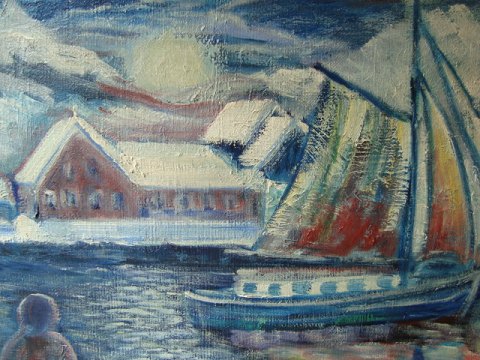 Et dejligt maleri, af en, for mig ubekendt, kunstner (kan nogen hjælpe?).
