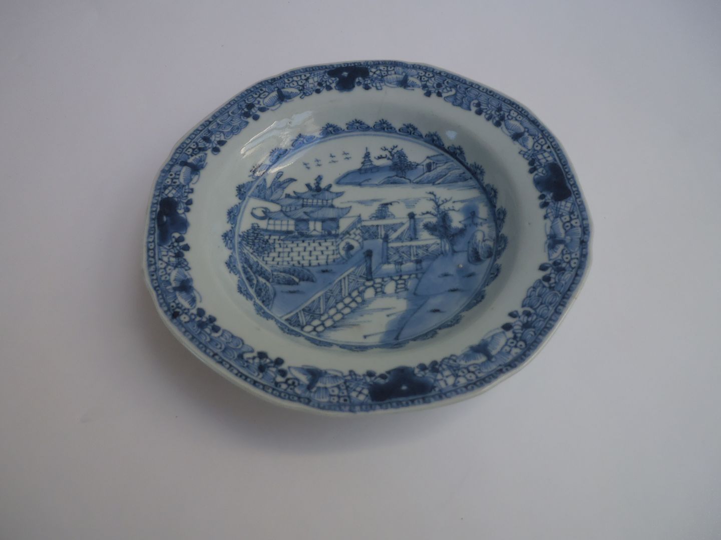 Blå, dyb tallerken af kinesisk porcelæn, Kina ca. 1780.