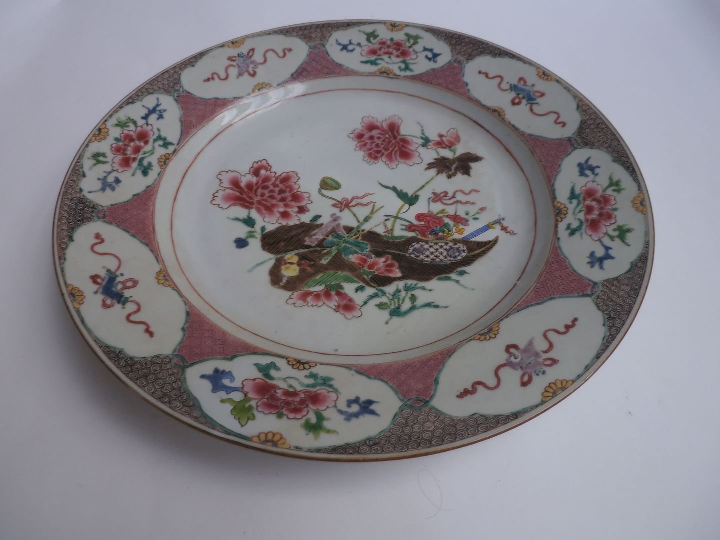 Family rose tray with decoration of tobacco leaf, China approx. 1860.