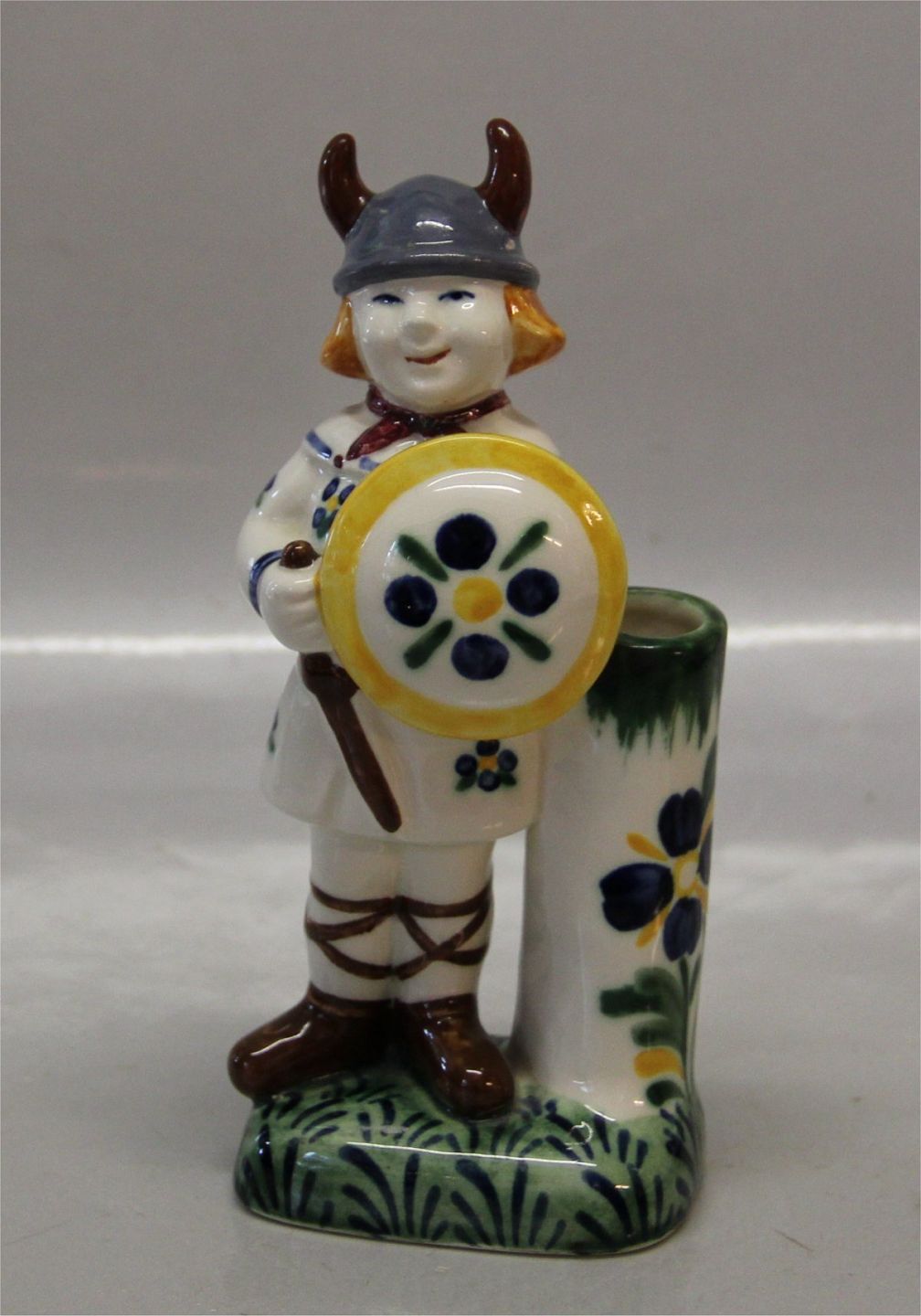 Aluminia fajance Børnehjælpsdagsfigurer 1963 Viking # 3230 Vikingen med skjold. Børnehjælpsfigurerne blev designet i skønvirke stil af Herluf Jensenius og formgivet af Hans Henrik Hansen (1941-1965) for at fejre børnehjælpsdagen. JUS