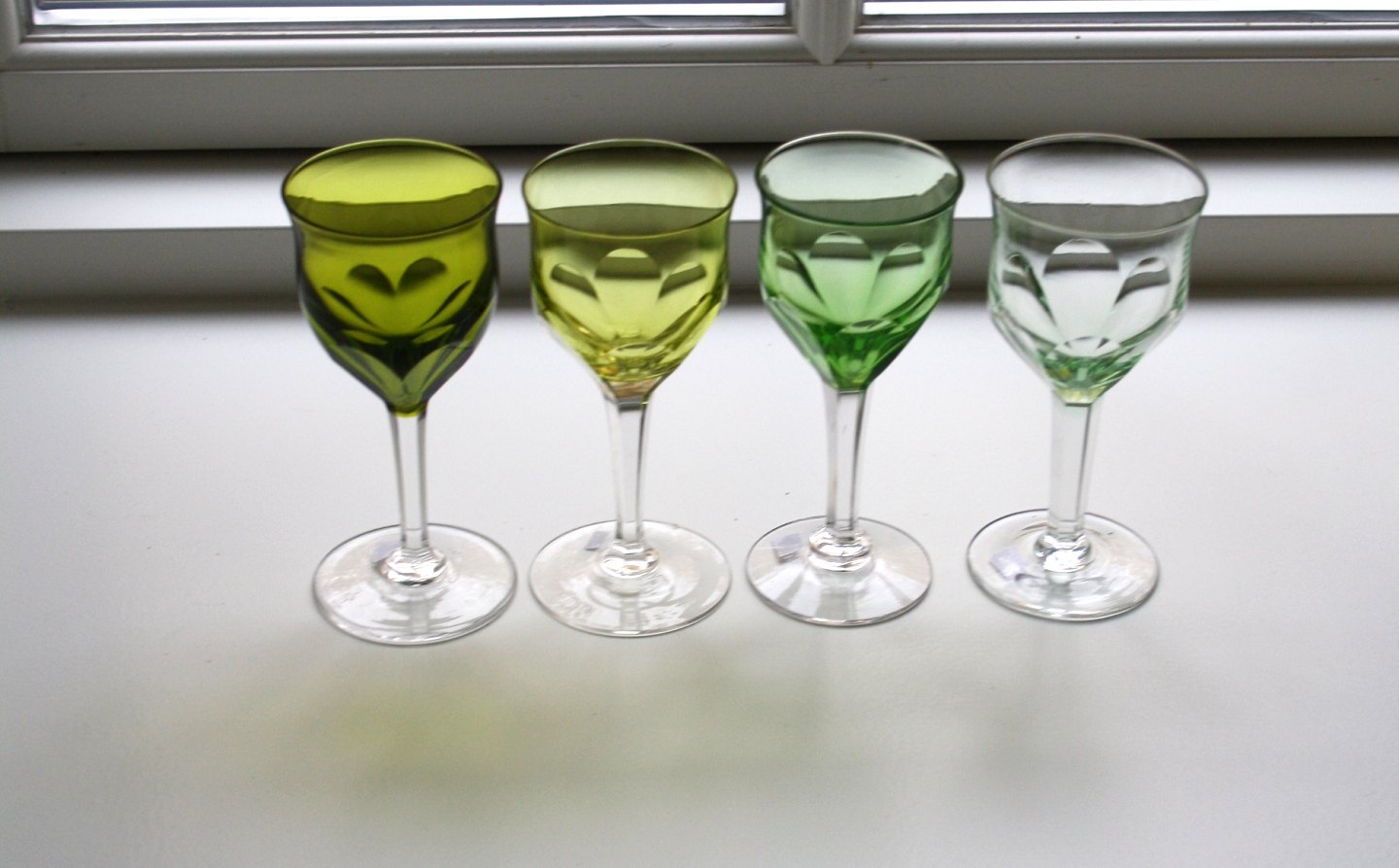 Hvidvin (urangrøn der toner ud i klar) højde 13,5 cm. Pris: 125 kr. stk. Lager: 8