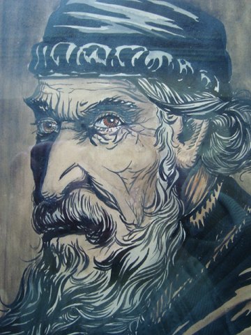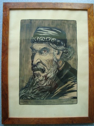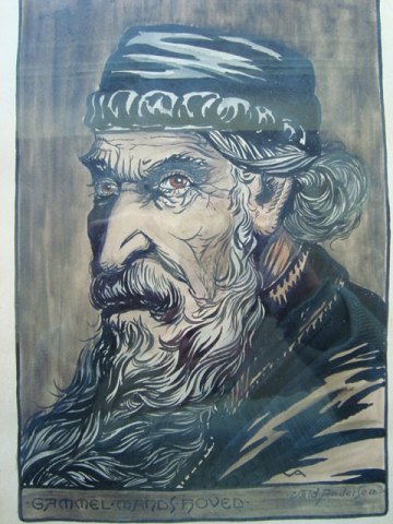 Tegning/akvarel af Valdemar Andersen - Portræt af gammel Jøde.