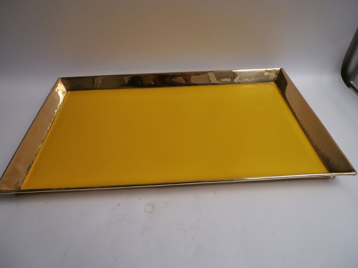 Messingbakke m. gul Kina lak, Danmark ca. 1930.