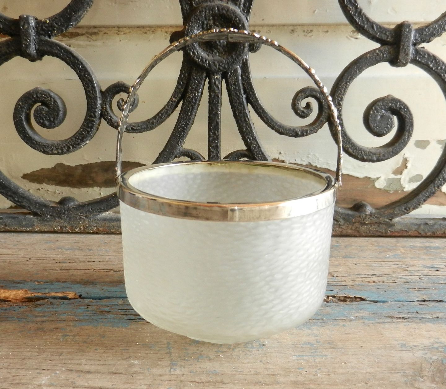 1800tals sukkerskål i mat glas med forsølvet hank.