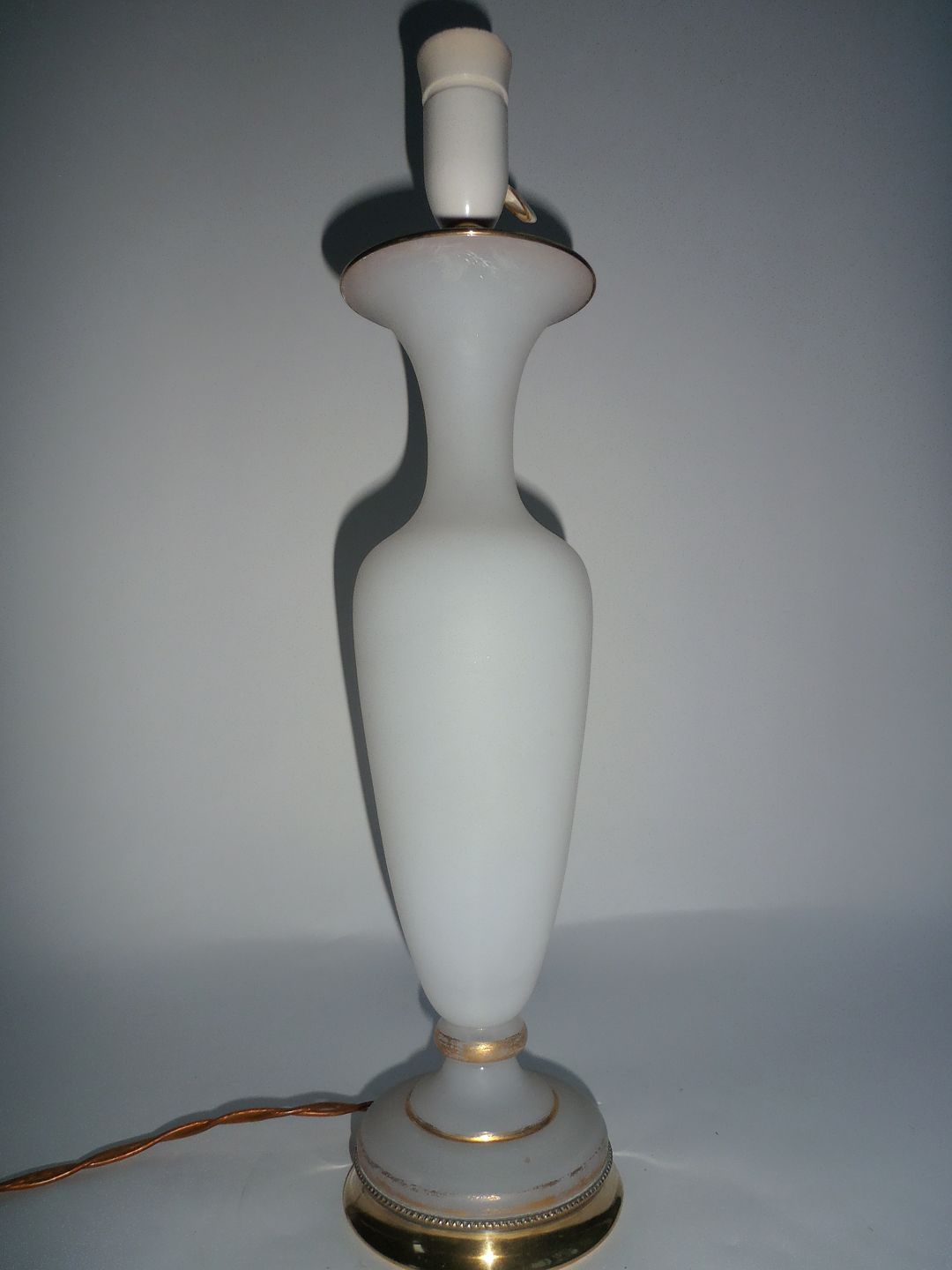 Opalinelampe af hvid mat opaline, monteret med messing i bund og top, Frankrig ca. 1920.