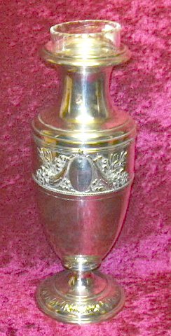 Vase af sølvplet med glas indsats