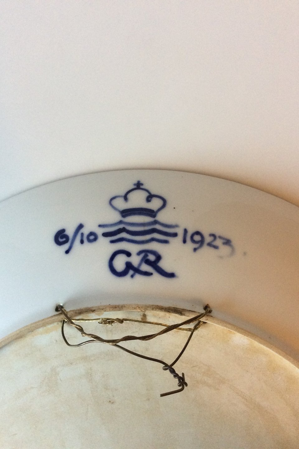 Royal Copenhagen Art Nouveau Unika Vægtallerken af Gotfred Rode fra 1923 med ko. Måler 41cm og er i god stand. Mærket som anden sortering, da den har en jern plet.